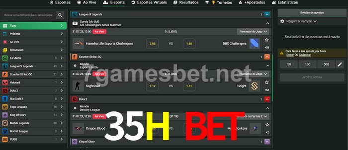 O 35H Bet oferece uma grande seleção de opções de apostas em e-sports com probabilidades competitivas